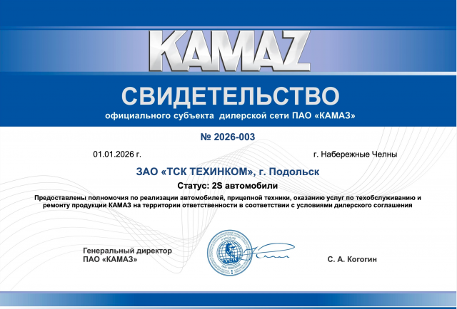 Статус дилера - 2S автомобили (продажа автомобилей и прицепной техники, сервисное обслуживание).
